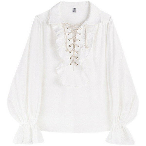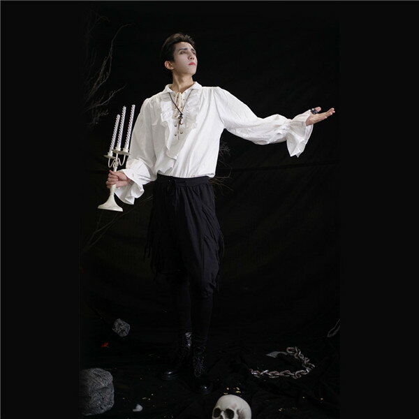 ブラウス ヴィンテージ パンク ゴシック ハロウィンコスプレ ハロウィン仮装 中世ヨーロッパ ルネッサンス 17世紀 王子様 洋服 演劇 コット風 シャツ 男性用 コスチューム パーティー 演出 ステージ 公爵 トップス ホワイト ブラック d9345c0x0x0f4