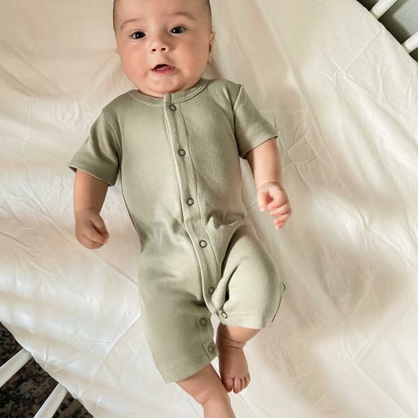 商品番号 / 型番:159-043 / OR458ブランド名:L'ovedbaby商品名:オーガニックコットン ベビー半袖ロンパースオーガニックコットンのギフトや出産祝いにご利用くださいオーガニックコットン ベビー半袖ロンパース アメリカ西海岸発のオーガニックベビーブランドL'ovedbaby(ラブドベビー)のオーガニックコットンベビー半袖ロンパースです。 シンプルな半袖のロンパースは、首元から股下までスナップボタンになっていて、お着替えやオムツ替えも簡単♪ 伸縮性のある柔らかなフライス生地が、優しく赤ちゃんの体にぴったりフィット。 暑い季節はこれ1枚でもおしゃれに着こなせます。 赤ちゃんは汗をたくさんかくので、通気性・吸湿性に優れたオーガニックコットン100%がおすすめです。 GOTS認証のオーガニックコットンを使用しています。 サイズ 9-12M(75-80cm):総丈50cm 肩幅23cm 袖丈11cm 身幅24cm 股下9cm 18-24M(85-90cm):総丈57cm 肩幅25cm 袖丈11cm 身幅25cm 股下9cm ※綿衣料品の特性上、個体差がある旨ご了承ください。 素材オーガニックコットン100%・フライス カラーStone(ライトグレー)・Seaform(グリーン)・Pool(ブルー) 原産国インド 製品について ●漂白・染色をしていない生成りの製品は、生地に黒や茶色のポツポツが見えることがあります。 これは製造工程で取りきれなかった綿カス(綿花の葉や茎)で、害はなく洗濯するごとに減少します。 ●自然の色味を生かした製品は、色ムラが生じていたり、日光やお洗濯で色性が変化することがあります。 ●生産ロットにより、同色でも色味の違いや、綿実油による特有のにおいが生じることがございます。 ●漂白・染色・プリントを行っている生地につきましては、オーガニックコットン認証基準に基づいて製造され、化学薬品の使用を極力抑えたものとなっております。 ●洗濯は洗濯ネットを使用して優しくお洗濯してください。 ●蛍光剤入りの洗剤や漂白剤、乾燥機のご使用はお避けください。 ●アイテム毎の注意事項につきましては、製品に付いているタグ等をご確認ください。 ●タグ等の材質に硬いものが含まれている場合、使用前にご確認の上、不要な物は取り除いてください。 ●プラスティックごみの排出を抑えるため、パッケージは再利用をしていることがございます。