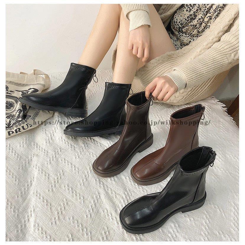 ショートブーツ ブーツ レディース イギリス風 秋冬 ローヒール フラット 甲高 幅広 歩きやすい 履きやすい 疲れにくい 黒 ブラック ブラウン おしゃれ かわいい