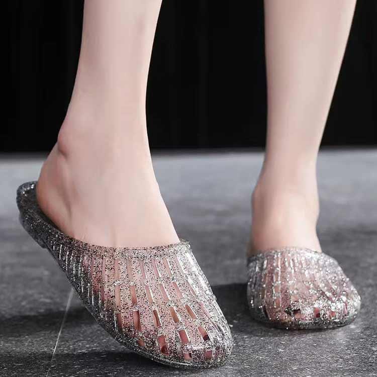 メッシュサンダル 2足セット レディース フラットサンダル スリッパ ぺたんこ スリッポン サマーサンダル クリアサンダル 通気 軽量 リゾ