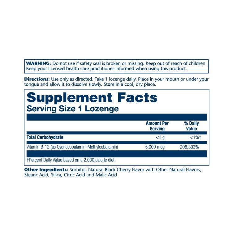 【今だけ半額】[内側から健康な体づくりをサポート]ソラレー ビタミンB-12 5,000mcg ブラックチェリー味 トローチ 30粒 Solaray Vitamin B-12 5000mcg 健康サプリメント 栄養補助食品 海外 アメリカ
