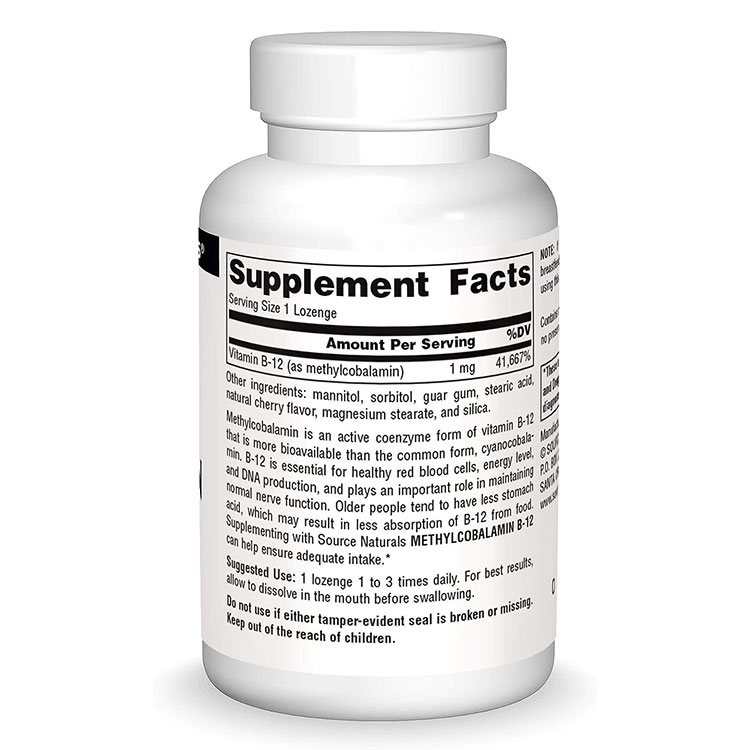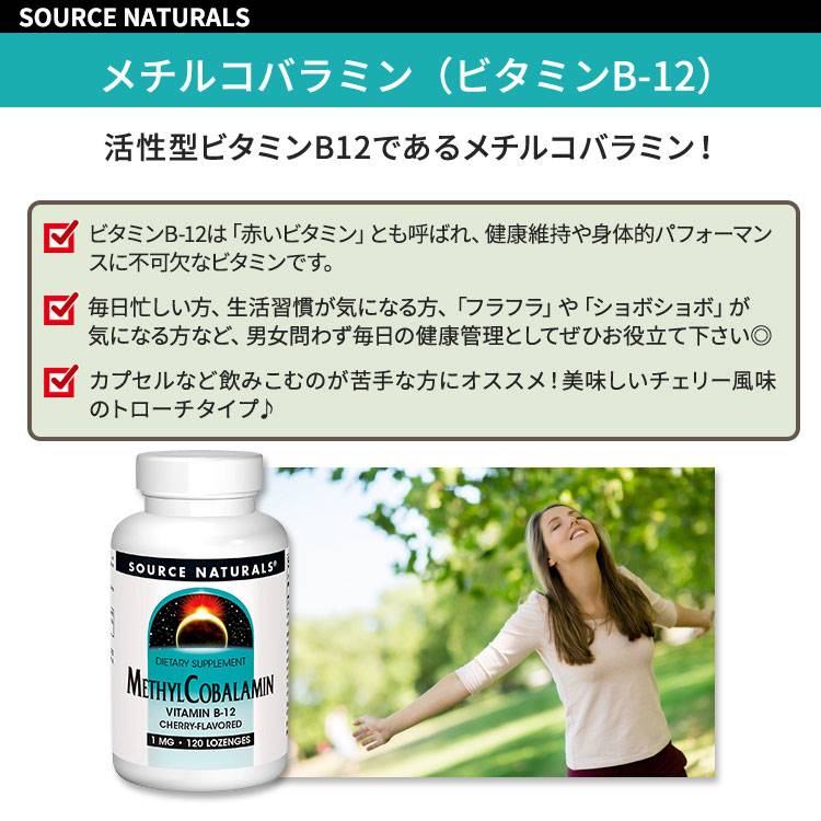 【今だけ半額】【最大1000円OFFクーポン】ソースナチュラルズ メチルコバラミン (ビタミンB-12) 1mg チェリー味 120粒 トローチ Source Naturals MethylCobalamin Cherry-Flavored サプリメント ビタミンB12【お取り寄せ商品】【合わせて買いたい】