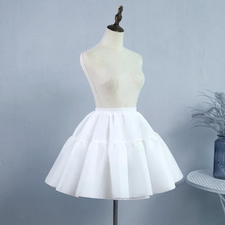 どんなドレスもふわふわに!ボリュームアップ丈は30cmと46cmの2種類をご用意しました。お子様はもちろん、大人のかたもご利用できます。お手持ちのスカートやワンピースに合わせることでふわふわなAラインのシルエットが完成します、ロリータ服、アイドル衣装と相性抜群です。肌触りがいい素材でふわふわの着心地で、チクチクしません。Aラインのシルエットなので日常的にも使え、着用シーンを選びません。ハロウィンやクリスマスなどのイベント コスプレ 結婚式の前撮り 結婚式 宴会 忘年会 二次会 発表会などいろんなシーンでご使用いただけます サイズ 丈30cm 丈45cm サイズについての説明 30cm/45cm丈、お子様はもちろん、大人のかたもご利用できます。ウエストゴムで50〜85cmまで伸縮可能 素材 ポリエステル 色 黒 白 備考 ●サイズ詳細等の測り方はスタッフ間で統一、徹底はしておりますが、実寸は商品によって若干の誤差(1cm〜3cm )がある場合がございますので、予めご了承ください。 ●商品の色は、撮影時の光や、お客様のモニターの色具合などにより、実際の商品と異なる場合がございます。あらかじめ、ご了承ください。 ●製品によっては、生地の特性上、洗濯時に縮む場合がございますので洗濯時はご注意下さいませ。 ▼色味の強い製品によっては他の衣類などに色移りする場合もございますので、速やかに(脱水、乾燥等)するようにお願いいたします。 ▼生地によっては摩擦や汗、雨などで濡れた時は、他の製品に移染する恐れがございますので、着用の際はご注意下さい。 ▼生地の特性上、やや匂いが強く感じられるものもございます。数日のご使用や陰干しなどで気になる匂いはほとんど感じられなくなります。