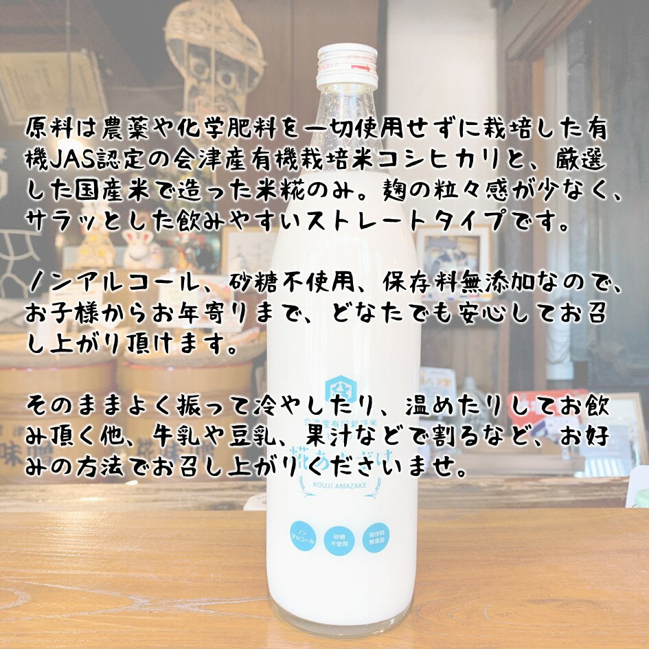 ※現在欠品中11月中旬「新米仕込み」再販予定【会津産有機栽培米コシヒカリ使用 糀あまざけ】有機JAS認定 ノンアルコール 砂糖不使用 保存料無添加 甘酒 あま酒 ノンシュガー 健康 美容 美活 腸活 菌活 常温 飲む点滴 会津米 コシヒカリ 蔵仕込 米糀 kouji 米麹 amazake