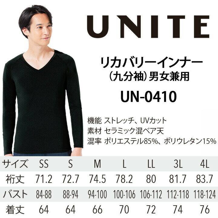 リカバリーインナー 九分袖 インナー男女兼用 unite UN-0410 アンダーシャツ 吸汗速乾 インナーウェア メンズ レディース 医療用白衣 看護師 クリニック 病院 オールシーズン ユナイト ストレッチ チトセ 【送料無料】