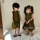 【時間限定全品10%OFF】子供服 セットアップ 双子服 キッズ 女の子 男の子 2点セット 兄妹お揃い ノースリーブカットソー ハーフパンツ スカートセット パンツセット シャツ+ズボン 無地 グリーン 春夏着 上下セット おしゃれ 通学着 上下セット 80-150