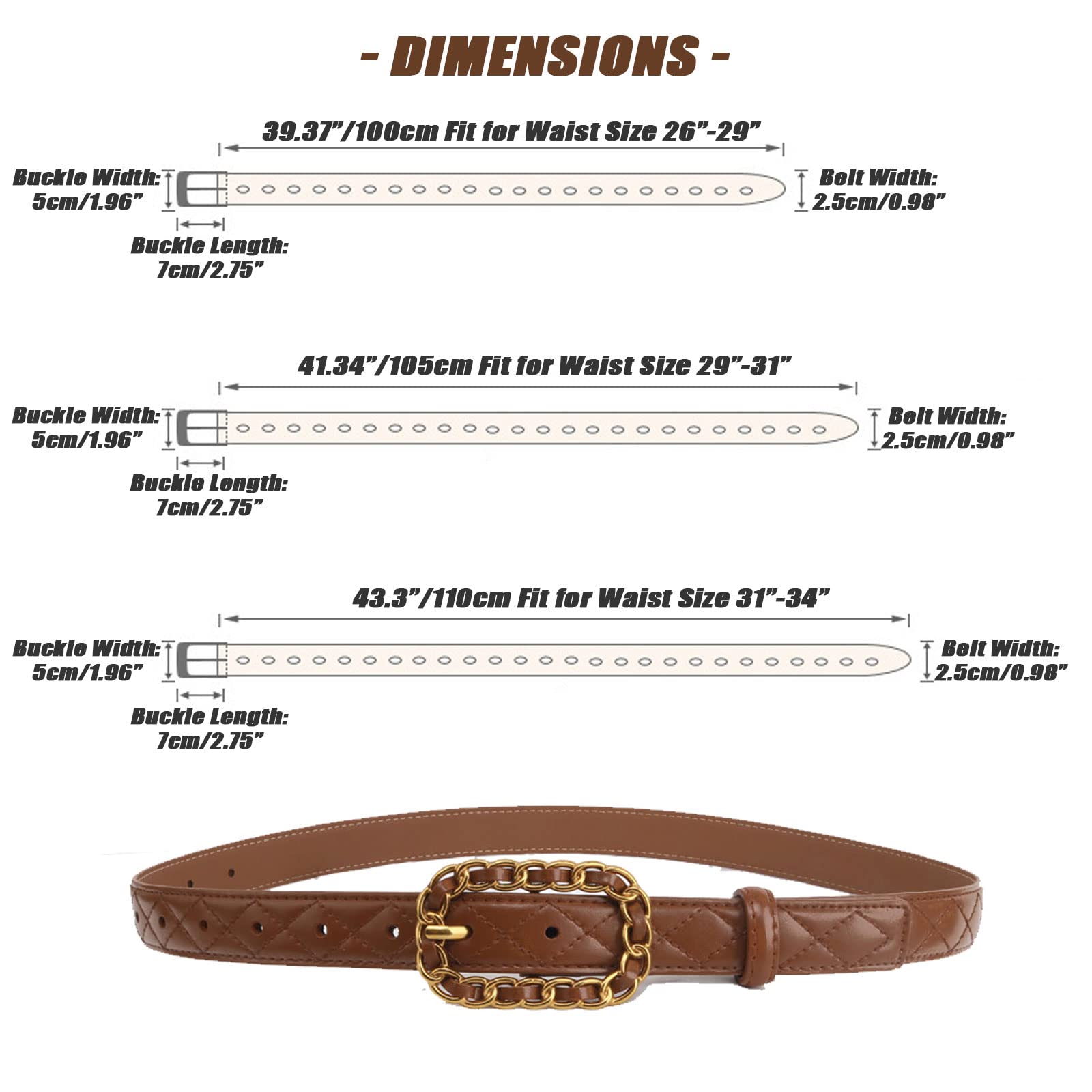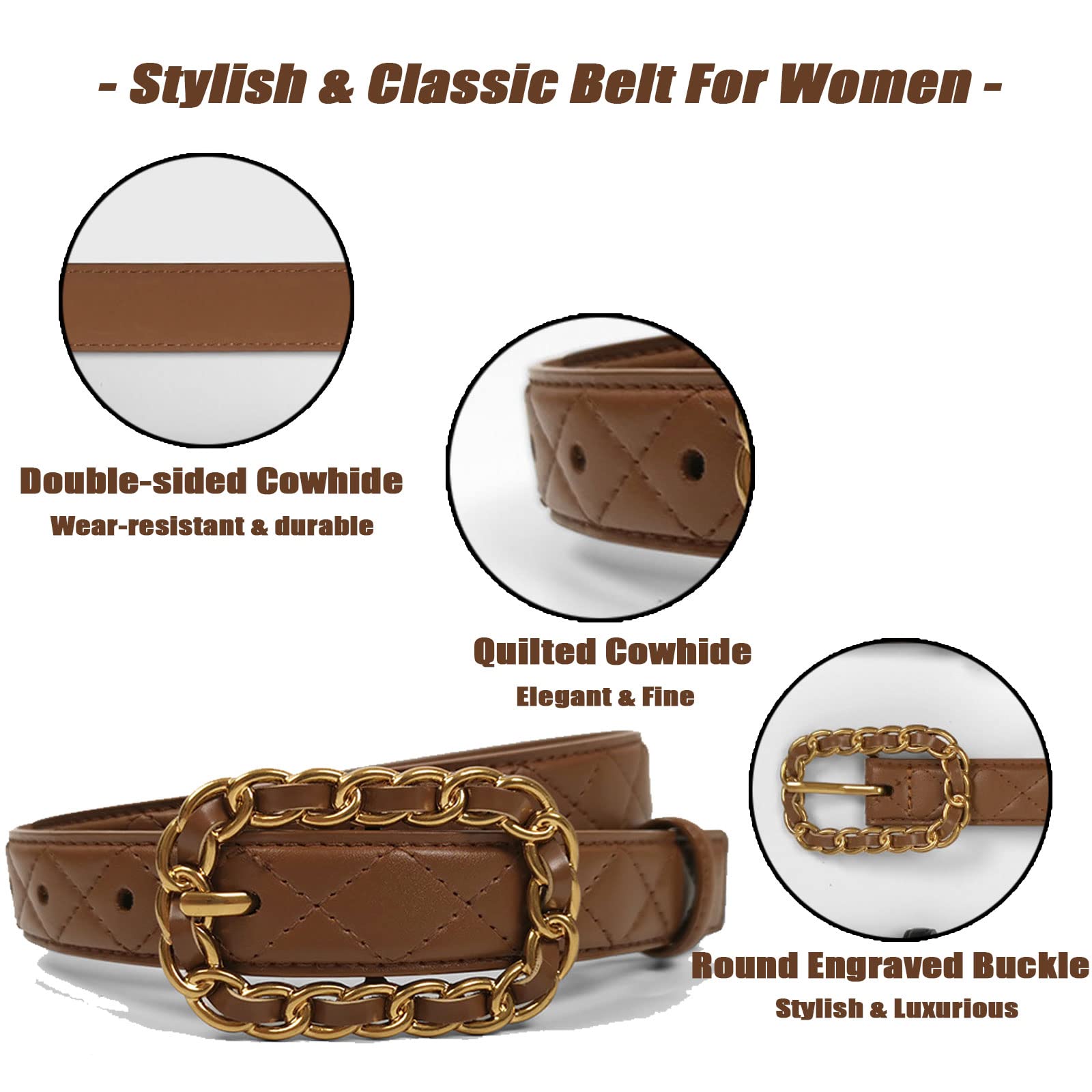 レディースファッション キルトベルト ドレス用 ジーンズ パンツ デザイナー 本革 レディースベルト 編み込みチェーンバックル付き