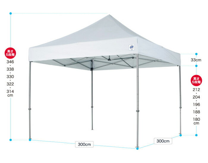 「 テント DX30WH ホワイト (3.0m×3.0m) スチール[dx30wh 簡単 軽量 アウトドア イベント 屋外 野外 日除け]」は、株式会社ホームセンターセブンが販売しております。メーカーイージーアップテント品名テント DX30WH デラックスシリーズ ホワイト (3.0m×3.0m) スチール品番又はJANコードJAN:2569068100155サイズ3000mm×3000mm×H3460mm重量30kg商品説明ワンタッチ式大型イベント&アウトドア用テント『イージーアップ・テント』大きさ、重量、強度のバランスが良く、使い勝手を重視したベストセラー・モデルですデラックスシリーズは、手軽さと頑丈さを両立させた高品質の本格派テントです。天幕には500デニールの厚手生地を採用。防水性・防炎性・UVカット性にすぐれ、耐久性の高さを実感していただけます。●サビに強く高級感あるフレームスチールフレームには粉体塗装を施しました。錆びに強く耐久性が高いうえ、グレード感も格別です。支柱はラインナップ全体で最も太い32mm角を使用。支柱の付け根に杭打ち用の穴を装備し、付属の杭が打ち込める場所での風対策が可能です。●ロック解除や高さ調節も簡単。設営・撤収も手軽にスムーズです。スライダーのロックを引くだけのプルピン式で、撤収時に解除しやすくなっています。まテントの高さはワンプッシュで簡単に変えられるL型ロックで、2段階に調節できます。※使用場面に応じて、有効な風対策をしてください。■サイズ 300cm x 300cm■天幕生地 500デニール■収納サイズ 29x29x159cm■フレーム材質 スチール・白粉体塗装■重量 30Kg■名称 500デニール■材質 ポリエステル100%■防水性 ○■防炎 ○■UVカット率 99%■天幕色:ホワイト※画像はイメージです。※商品の色は、コンピュータディスプレイの性質上、実際の色とは多少異なります。※仕様は予告なく変更する場合があります。実際の商品とデザイン、色、仕様が一部異なる場合がございます。