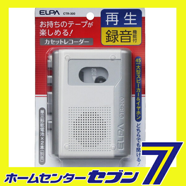 「カセットテープレコーダー CTR-300 ELPA」は、株式会社ホームセンターセブンが販売しております。メーカーELPA品名カセットテープレコーダー CTR-300品番又はJANコードJAN:4901087204496サイズ-重量200商品説明●簡単操作でカセットテープの録音・再生●45mm大型スピーカー搭載●スピーカーでもイヤホン(別売)でも聞ける■トラック方式:モノラル ■録音方式:DCバイアス■消去方式:マグネット消去■スピーカー:直径45mm 丸型 16Ω 0.5W■マイク:内蔵マイク、外部マイク端子(φ3.5mm)■出力端子:φ3.5mmステレオミニジャック■電源:DC3V 単三形乾電池X2本(別売) DC4.5V 400mA(別売ACアダプター使用時 弊社型番:ACD-045)■外形寸法(約):幅90X高さ116X厚さ35(mm)(最大値)■質量:約163g(電池除く)■電池持続時間(JEITA):スピーカー使用時 連続再生 約8時間※画像はイメージです。※商品の色は、コンピュータディスプレイの性質上、実際の色とは多少異なります。※仕様は予告なく変更する場合があります。実際の商品とデザイン、色、仕様が一部異なる場合がございます。