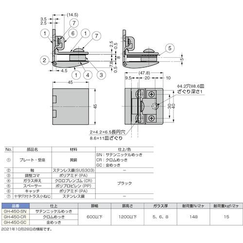 ■SUGATSUNE (170090700)GH-450-CR/キャッチ付ガラス蝶番〔品番:GH450CR〕【2258122:0】[送料別途見積り][掲外取寄][店頭受取不可]