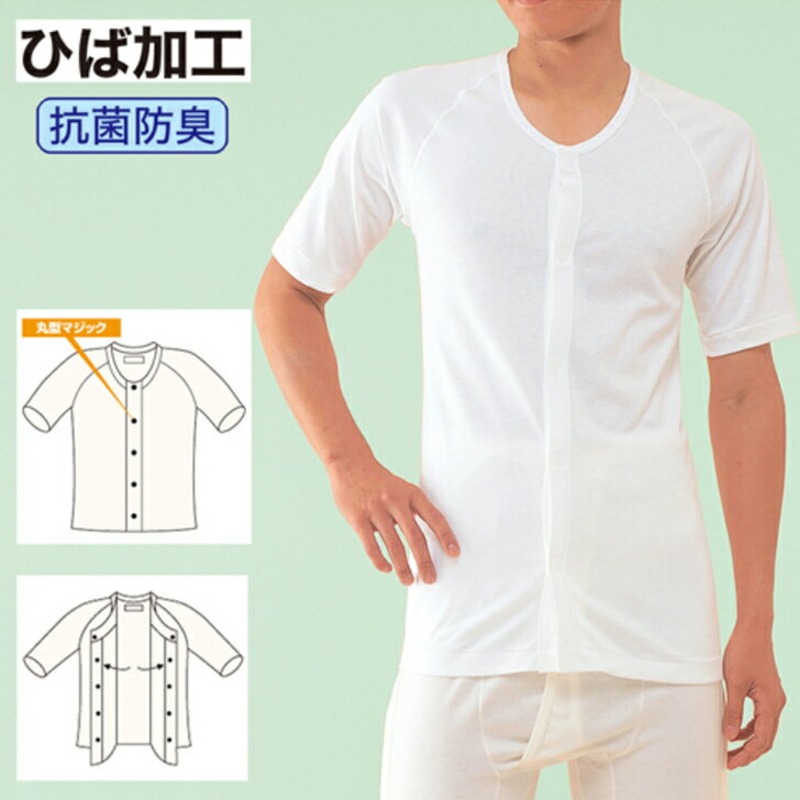 肌着 下着 インナー メンズ 男性用 前開き 介護 入院 お年寄り 高齢者 神戸生絲 紳士ひば前開き5分袖 フライス / HV202【返品不可】