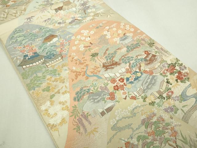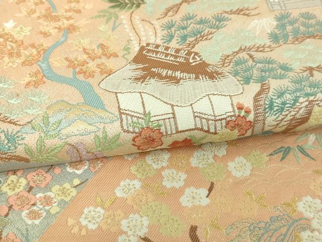 平和屋着物▼六通柄袋帯 唐織 風景草花文 金糸 正絹 逸品 DAAV9790sf