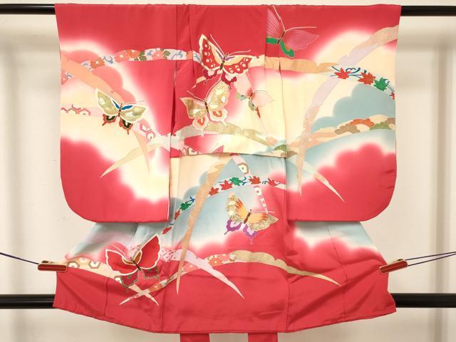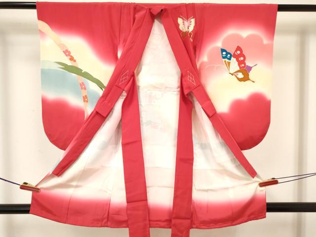 平和屋着物[]七五三 女の子 3歳 祝着 三つ身 長襦袢(袷)セット 雪芝花蝶文 暈し染め 金銀彩 逸品 DABA3571ma