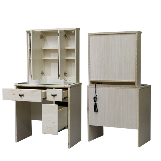 【送料無料】ドレッサー 化粧台 メイク メイク台 3面鏡 かがみ 鏡台 収納 木製 シンプル かわいい チェア付き デスク 机 椅子★フルーラ70ドレッサー3面BOX チェア付き【02P03Dec16】
