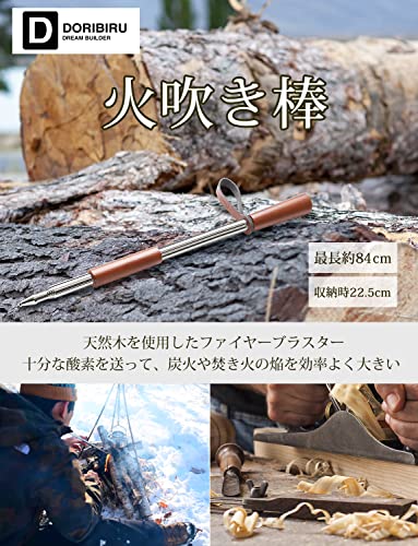 【送料無料】Doribiru 火吹き棒 火おこし 伸縮式 コンパクト 超長い 84cm 天然木 収納袋付 ファイヤーブラスター アウトドア/キャンプ/バーベキューに 大切な焚き火パートナー FF-002 (ナチュラル)