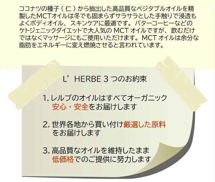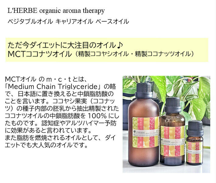 MCT ココナツオイル 精製 50mL 精製ココナツ種子油 レルブ オーガニック キャリアオイル ベースオイル ベジタブルオイル 植物油 希釈用オイル コスメティックグレード スキンケア 有機栽培 ボディオイル アロマテラピー MCTオイル
