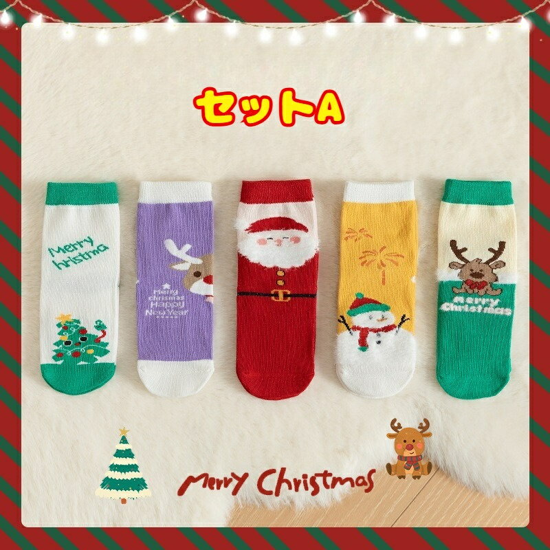 送料無料 【5足組】 ベビー 子供 靴下 かわいい ソックス クリスマス サンタクロース 雪だるま トナカイ クリスマスツリー フットカバー 綿 コットン くるぶし 赤ちゃん 子供 ショート丈 浅履 スリッポン 女の子 男の子 リブ 春 夏 秋 冬 プレセント 雰囲気 楽天海外通販