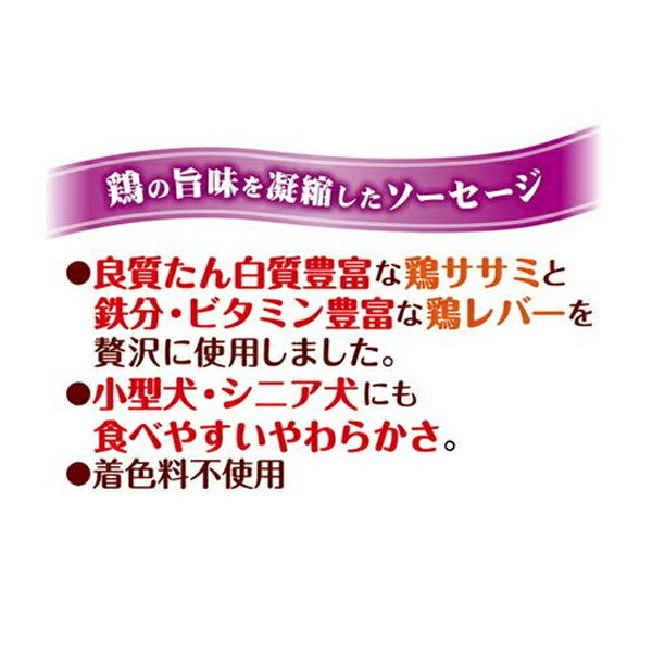 鉄分・ビタミン豊富な鶏レバーと良質な鶏ササミを贅沢に使用したソーセージ!小型犬・シニア犬にも食べやすいやわらかさ、食べきりサイズに仕上げました。個包装だから、いつでも開けたての美味しさが楽しめて、お出かけやお散歩に便利です。着色料不使用。 【 原材料 】 肉類(鶏レバー・鶏ササミ)、でんぷん類、大豆たん白、食塩、増粘安定剤(カラギナン)、リン酸塩(Na)、保存料(ソルビン酸K)、酸化防止剤(V.C) 【 保証分析値 】 たん白質:8.5%以上、脂質:3.0%以上、粗繊維:1.0%以下、灰分:4.0%以下、水分:72.0%以下 【 代謝エネルギー 】 151kcal/100g 【 原産国 】 中国 【 メーカー名 】 ペティオ 【 JANコード 】 4903588135538