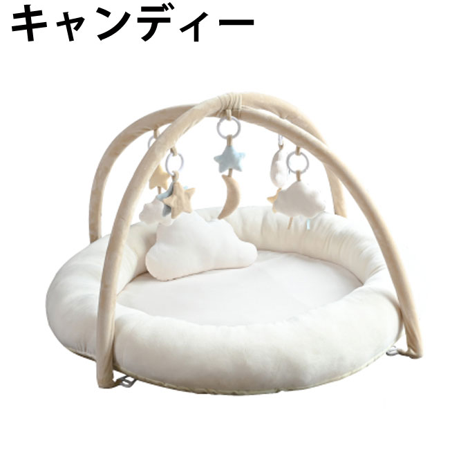 ママのおなかの中をイメージしたプレイマットジムマット。 お空を連想させる雲や星のモチーフが魅力のプレイジムマット ・トイバーには楽しいぶら下がりトイや赤ちゃんがご機嫌になるミラーが付いています ・はらばいをサポートする雲形クッション付き ・トイバーを外して、マット単体、クッション単体でも使用可能です ・専用のバック付きで収納や持ち運びも簡単 ・ふわふわとろとろの生地で赤ちゃんのお昼寝マットにも最適 ■カラー:キャンディー ( コットンキャンディー )、ミルクグレー ■サイズ:約幅100x奥行100x高さ50cm ■素材:ポリエステル、アクリル樹脂、発泡ポリエチレン、グラスファイバー ■原産国:中国 検索ワード:プレイマット プレイジム ラグ 洗濯 赤ちゃん ベビートイ 取り外し おうち時間 4571303950089 4571303957965