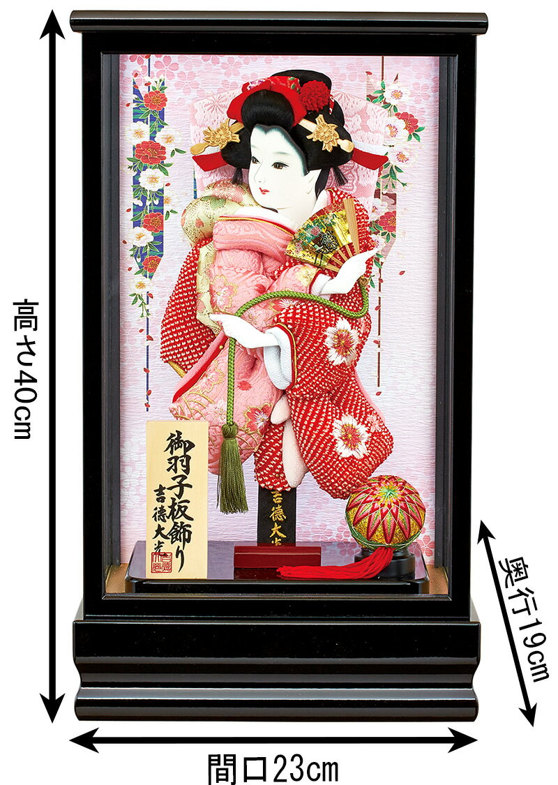 サイズ:間口23×奥行19×高さ40(cm)節句人形優良店鹿の子絞り 8号 黒艶塗ケース商品番号:h041-ys-205207【2026年度新作羽子板】【顔がいのちの吉徳】江戸で最古の人形の老舗、顔がいのちの吉徳でお馴染みの吉徳大光から、おすすめの羽子板を入荷いたしました。気品漂うお顔立ちに、風合い豊かな鹿の子絞りの衣装をあわせた、優美な雰囲気あふれる羽子板飾りです。鹿の子絞りの反対側の生地には、皇族や貴族に親しまれた有職文様の一つで、運気上昇を象徴する雲立涌の地紋があしらわれています。脇には、ふくよかに円満に育ちますよう…にとの願いを込めた鞠飾りが添えられ、縁起の良い仕上がりとなっております。艶が美しい黒塗りのケースは、羽子板の華やかさを引き立てますね。コンパクトサイズなので、飾る場所や収納スペースが限られたお客様にも大変好評をいただいております。サイズ:間口23×奥行19×高さ40(cm)女の子の初正月の贈り物である羽子板を飾るということは、羽根を「災厄」「魔」と見立て、羽根をつく=災厄や魔を突き返す、という意味があります。「今年も一年無事に過ごせますように・・・」というおまじないとして、古くから受け継がれてきた風習です。一つ一つ手作り品につき、羽子板の生地の色や柄の出方が若干異なる場合があります。また、同一材料を使用しておりますが、各サイズに一番合ったバランスで製作しているため、縮尺やお顔の向き、細部(かんざし・帯など)の仕様が若干変わる場合がありますので、予めご了承ください。こちらの商品は予定数を超えますと、工房より取寄せとなります。手作り品につきご注文時期によっては、ご希望日時にお届けできない場合やご用意出来ない場合がございます。その際はメールにてご連絡いたします。1.お支払方法は、クレジットカード・銀行振込・ 代金引換(30万円まで)よりお選びいただけます。2.ギフト包装、のし紙、対応できます。注文画面で、お選び下さい。お名前などは備考欄にお書き下さい。3.10000円以上の商品は送料無料です。(一部除外品あり)4.手造り品ですので商品性質上又、さらなる向上 のため仕様変更がある場合がございます。衣装の模様や柄は、同一のお着物を用いておりますが、商品ごとに若干異なる場合がございます。予めご了承くださいませ。5.商品画像はなるべく忠実に撮影しておりますが、モニターなどによって、異なる場合や、また、天然素材を使いますので、木目や風合いは、異なる場合がございます。あらかじめご了承ください。商品は豊富に用意しておりますが、時節により、万一完売の際はご容赦下さいませ。本支店店頭での販売もしておりますので、同時期に完売の可能性もございます。【2026年度新作】羽子板 吉徳大光ケース飾り 鹿の子絞り 8号 黒艶塗ケースh071-ys-205207 【2026年度新作羽子板】【顔がいのちの吉徳】江戸で最古の人形の老舗、顔がいのちの吉徳でお馴染みの吉徳大光から、おすすめの羽子板を入荷いたしました。気品漂うお顔立ちに、風合い豊かな鹿の子絞りの衣装をあわせた、優美な雰囲気あふれる羽子板飾りです。鹿の子絞りの反対側の生地には、皇族や貴族に親しまれた有職文様の一つで、運気上昇を象徴する雲立涌の地紋があしらわれています。脇には、ふくよかに円満に育ちますよう…にとの願いを込めた鞠飾りが添えられ、縁起の良い仕上がりとなっております。艶が美しい黒塗りのケースは、羽子板の華やかさを引き立てますね。コンパクトサイズなので、飾る場所や収納スペースが限られたお客様にも大変好評をいただいております。サイズ:間口23×奥行19×高さ40(cm)女の子の初正月の贈り物である羽子板を飾るということは、羽根を「災厄」「魔」と見立て、羽根をつく=災厄や魔を突き返す、という意味があります。「今年も一年無事に過ごせますように・・・」というおまじないとして、古くから受け継がれてきた風習です。一つ一つ手作り品につき、羽子板の生地の色や柄の出方が若干異なる場合があります。また、同一材料を使用しておりますが、各サイズに一番合ったバランスで製作しているため、縮尺やお顔の向き、細部(かんざし・帯など)の仕様が若干変わる場合がありますので、予めご了承ください。こちらの商品は予定数を超えますと、工房より取寄せとなります。手作り品につきご注文時期によっては、ご希望日時にお届けできない場合やご用意出来ない場合がございます。その際はメールにてご連絡いたします。