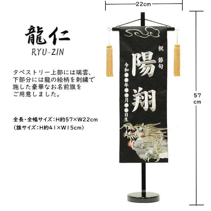 男の子用 名前旗「龍仁」特中サイズ(名前、生年月日 刺繍入り)黒 昇龍 干支 かっこいい 招福名前旗 端午の節句 こどもの日 ご兄弟にも