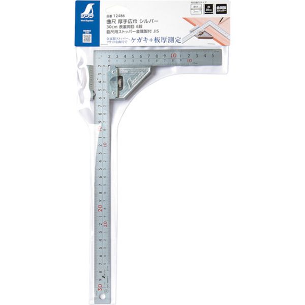 【メーカー在庫あり】 シンワ測定(株) シンワ 曲尺 厚手広巾 シルバー 30cm表裏同目 8段目盛 ストッパー金属製付 JIS 12486 HD店