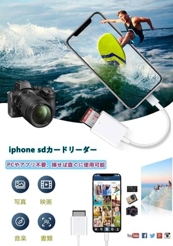 SDカードリーダー2025新登場カードリーダーライトニング sdカードカメラリーダー デジカメ スマホ転送 i-Phone/i-Pad用 高速転送 高精細写真動画/音声ファイル/4Kビデオ 読み込みWord/Excle/PPT/PDF 双方向高速データ転送 設定不要 最新IOS16対応(type-c対応ではありません)ブランド: SK-CinDa