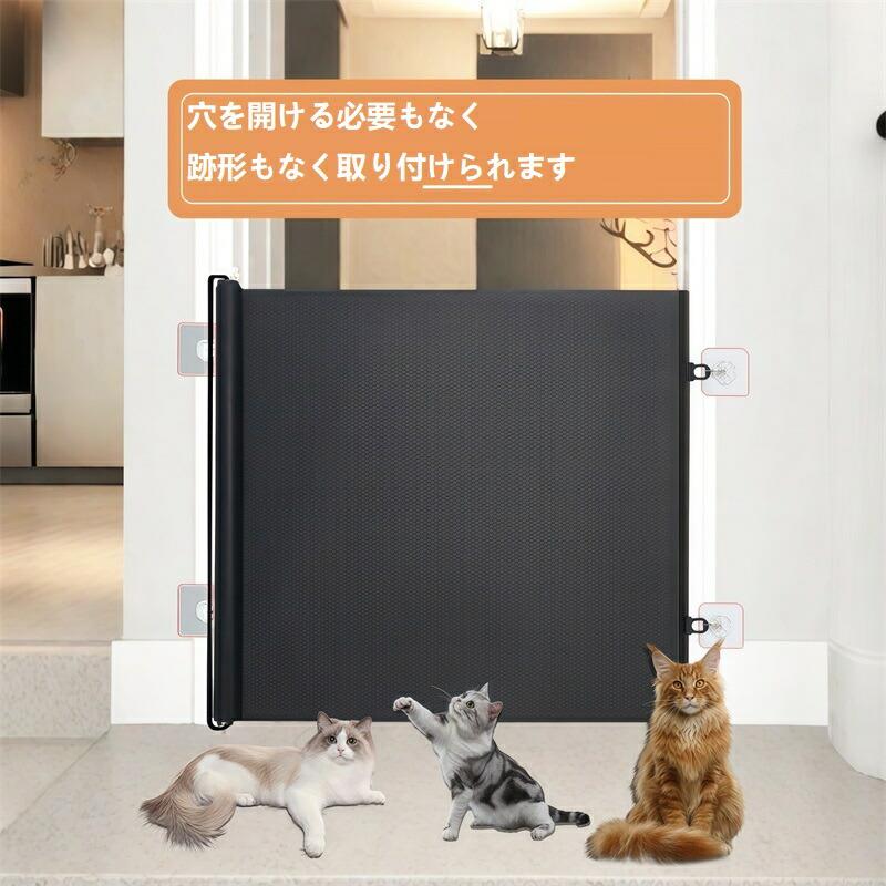 穴を開ける必要がなく、簡単に設置できます。穴を開ける必要がない設計で、ドアや階段の設置が簡単です。壁を傷つけることなく簡単に取り付け、取り外しができます。伸縮式で幅を自由に調節可能:伸縮式のデザインは、さまざまな幅のドアや階段をサポートします。最大幅は安定しており、赤ちゃんやペットの安全を確保します。ロールアップ式で使いやすい:ロールアップ式のメッシュフェンスはスムーズに開閉でき、使いやすいです。大人でも楽に登れるので、赤ちゃんやペットの逃げ出しを防ぎます。折りたたみ収納も簡単:折りたたみ式なので使わない時はコンパクトに収納できます。持ち運びも簡単で家中どこでも使えます。赤ちゃんやペットに優しい:ドアからの脱出を防ぐために、赤ちゃんやペット(猫や犬)を固定するように設計されています。階段の転倒防止に最適です。
