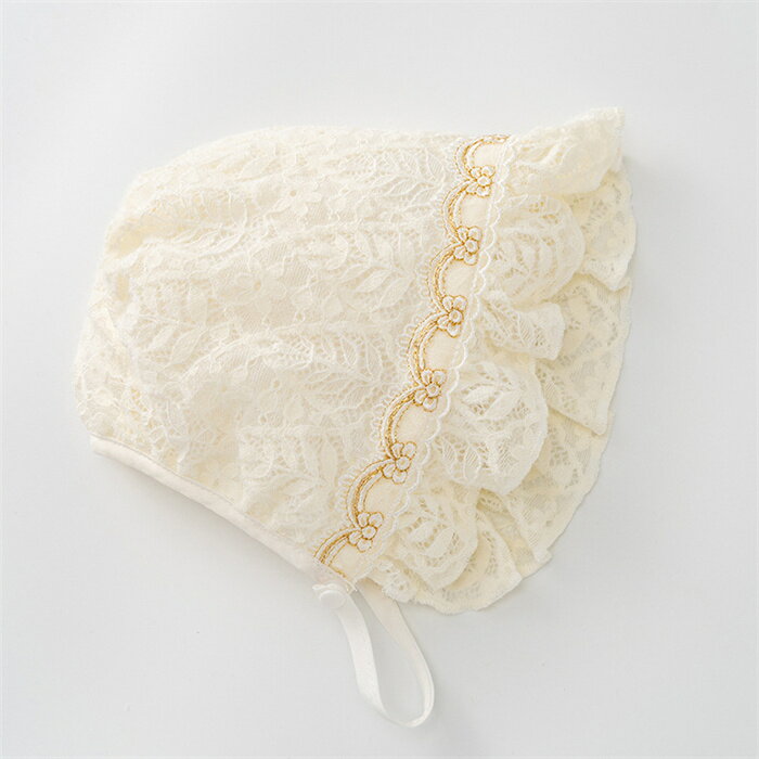 ベビー ボンネット 帽子 新生児 ベージュ レース 帽子 女の子 薄手 通気性 幼児 屋外 外出 サンハット レジャー 夏 幼児 子供 キッズ帽子
