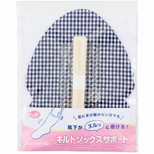 キャッチコピー足に手が届かない方でも靴下がスルッと履ける!特長● 紐が長いから体を曲げずに立ったままでも履ける。※必ずイスなどにつかまれる場所で行ってください。● 素材がやわらかで素足にやさしい。● 幅広タイプなので大きなサイズにも対応。● 表面はすべり易く、裏面にはすべり止めが付いているので一度で引き上げられます。● 軽量で持ち運びにも便利。☆こんな方に● 靴下のゴムを広げて足を入れることができない方● 靴下を引っ張り上げることができない方● 股関節を曲げられない方仕様材質:表地・取っ手紐…綿100%、芯…ポリプロピレン、滑り止めシート…ポリエステル・アクリル樹脂生産国:日本パッケージサイズ:225×265×10mmパッケージ重量:70g備考※メーカー取り寄せ商品となりますので、ご注文後の注文キャンセルはお承りできません。※メーカー取り寄せ商品となりますので、返品交換は一切お受けいたしかねます。ただし初期不良の場合でメーカーに在庫が確認できる場合は交換にて対応致します。※商品開梱後は組み立てやご使用の前に、コンディション・付属品類が揃っていることをご確認ください。 お客様の都合による返品・交換はお受けできませんので、ご注意ください。※掲載商品は、メーカー都合により予告無く仕様を変更(商品名やパッケージを含む)する場合があります。そのため、掲載内容(商品名・商品説明・商品画像等)はお届けする品物と異なる場合がございます。※メーカー取り寄せ商品となりますので、メーカー欠品の場合はご注文をキャンセルさせていただきます。あらかじめご了承ください。※取り寄せ品のため納期が前後する場合がございます。あらかじめご了承下さい。