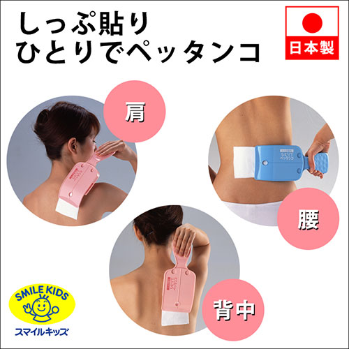 キャッチコピー背中にスライドするだけ!しわなくきれいに貼れます。特長・背中や腰、肩などにひとりで湿布が貼れます。 ・胸部や胴回り、腕、脚にもしわなく綺麗に貼れます。 ・患部に当てて、軽く押さえながら貼る方向にスッと動かすだけで、簡単に湿布が貼れます。 ・薄型湿布にも対応しています。 ・湿布サイズは10cm×14cmを基準にしていますが、7×10cmのものやご自身でカットされたものにもご使用いただけます。 ※カットしてお使いの場合は必ずとちらか一方のサイズを7cm以上にしてください。仕様材質:本体/ABS樹脂、密着テープ/ナイロン、磁石/ネオジウム磁石、磁石受け/鉄(ニッケルメッキ) 商品サイズ:115×265×38mm 商品質量:143g 生産国:日本備考※メーカー取り寄せ商品となりますので、ご注文後の注文キャンセルはお承りできません。※メーカー取り寄せ商品となりますので、返品交換は一切お受けいたしかねます。ただし初期不良の場合でメーカーに在庫が確認できる場合は交換にて対応致します。※商品開梱後は組み立てやご使用の前に、コンディション・付属品類が揃っていることをご確認ください。 お客様の都合による返品・交換はお受けできませんので、ご注意ください。※掲載商品は、メーカー都合により予告無く仕様を変更(商品名やパッケージを含む)する場合があります。そのため、掲載内容(商品名・商品説明・商品画像等)はお届けする品物と異なる場合がございます。※メーカー取り寄せ商品となりますので、メーカー欠品の場合はご注文をキャンセルさせていただきます。あらかじめご了承ください。※取り寄せ品のため納期が前後する場合がございます。あらかじめご了承下さい。