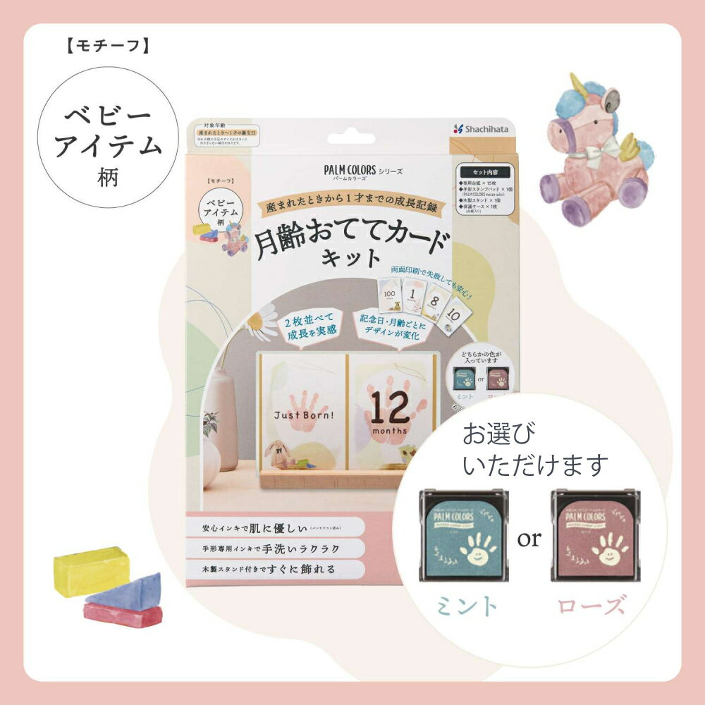 シャチハタ HPSC-B/H-MT RP 月齢おててカードキット ベビーアイテム柄 ミント or ローズ(カラー選択可)