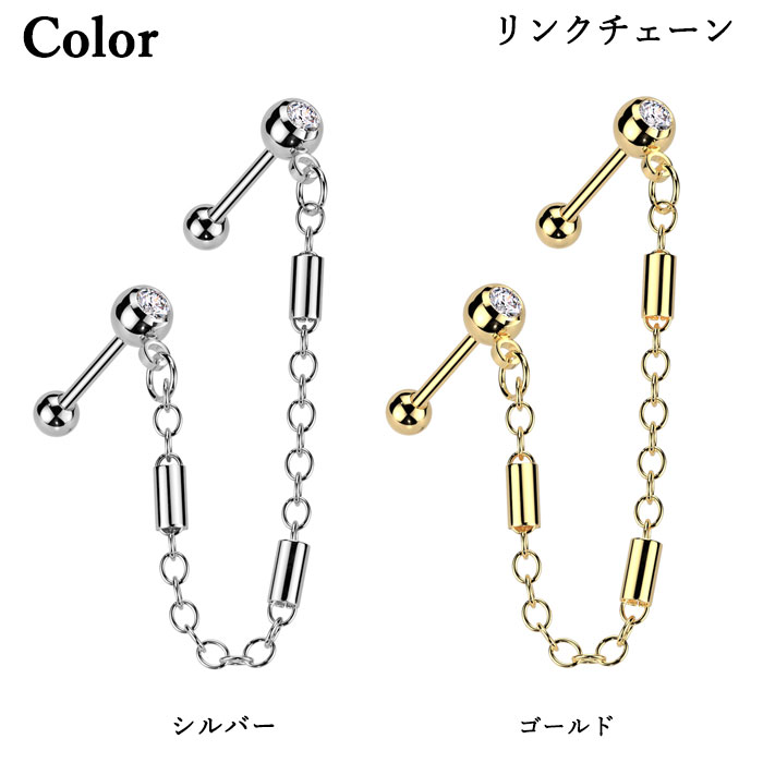 軟骨ピアス 18G チェーン ジュエル ダブル ストレートバーベル シンプル ボディピアス シルバー ゴールド ヘリックス トラガス サージカルステンレス メンズ レディース おしゃれ nnktp