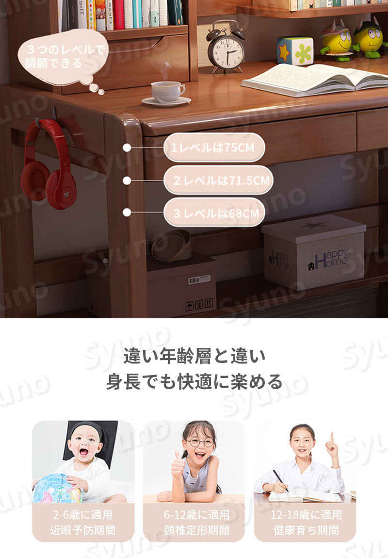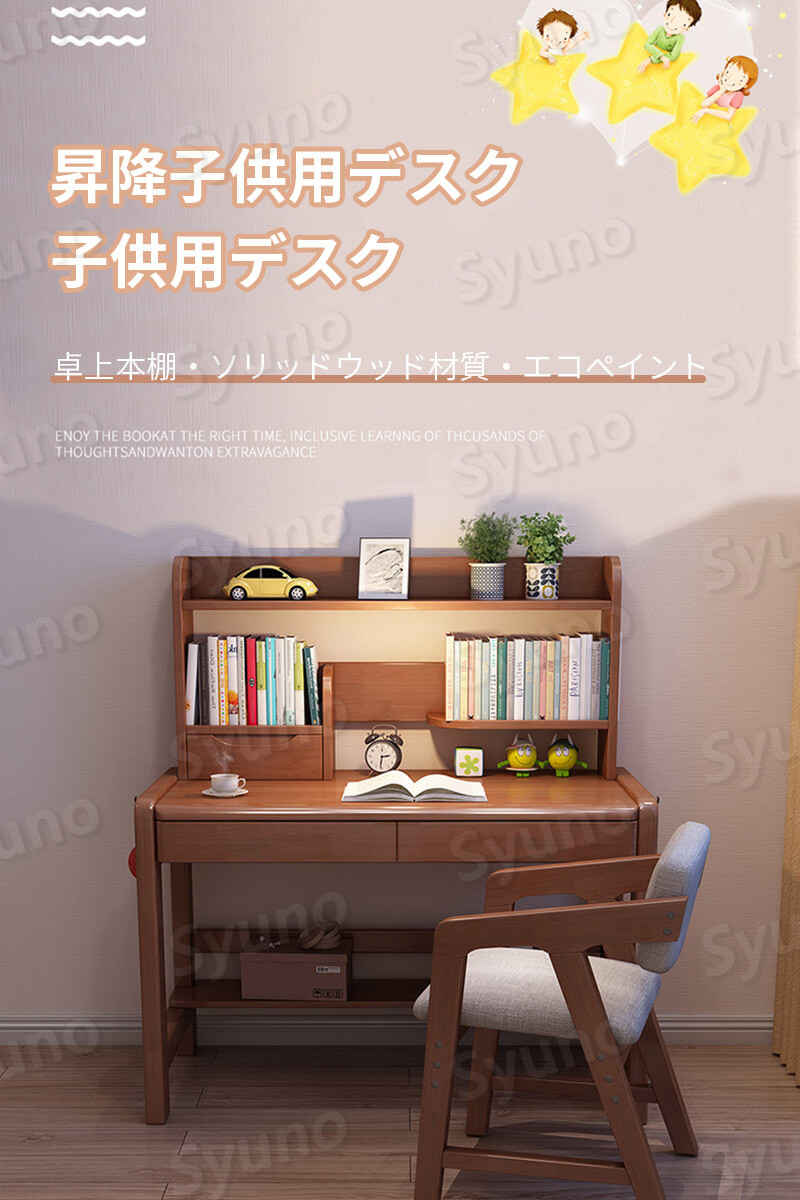 お買い物マラソン【P5倍】80cm引き出し二つ 昇降子供用デスク ソリッドウッド机 子供用デスク 学生用勉強卓 昇降できる本棚 書斎用 デスク子供用 調節できる高度 勉強デスク ソリッドウッド ラバーウッド 机 本棚 ライティングビューロー 書斎机 パソコンデスク 文机