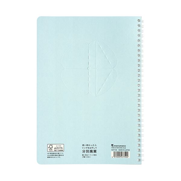 ■サイズ・色違い・関連商品■グレー■ライトパープル■ライトブルー[当ページ]■ライトグリーン■イエロー■ライトオレンジ■商品内容【ご注意事項】この商品は下記内容×3セットでお届けします。●表紙にプラスチック代替素材(FSエリプラ+)を使用したB5リングノート。表紙色はライトブルー・10冊セットです。●「FSエリプラ+」は、食品のパッケージにも採用されているほど、水や油に強い特長があります。●多少の汚れをふき取ることができるので、気付かないうちにつく手汗や手油による汚れを防ぐことができます。●生分解性にも優れているので、廃棄時の二酸化炭素の削減につながります。●分別廃棄が簡単「リング開き」付。●表紙・本文・扉紙、すべてFSC認証紙を使用。●ペンケースに入る短い定規でも縦線が引きやすいよう、中央には5mm間隔でメモリが付いています。●ウラ抜けしにくくなめらかな書き心地の高品質なマルマンオリジナル筆記用紙を採用しています。●美しく切り取りのできるミシン目は、ファイリングもでき、ノートの活用シーンを広げます。■商品スペックサイズ:B5寸法:タテ252×ヨコ179mm罫:A罫罫幅:7mm枚数:40枚行数:30行表紙色:ライトブルー紙色:白坪量:70g/m2材質:表紙:FSエリプラ+、中紙:筆記用紙重量:169gその他仕様:●ツインリング●ミシン目入●生産国:日本■送料・配送についての注意事項●本商品の出荷目安は【5 - 11営業日 ※土日・祝除く】となります。●お取り寄せ商品のため、稀にご注文入れ違い等により欠品・遅延となる場合がございます。●本商品は仕入元より配送となるため、沖縄・離島への配送はできません。[ N477-52 ]