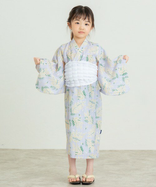 ●50%OFFセール●ラ・ポシェ・ビスキュイ La poche biscuit ミモザ柄 浴衣 ( 110・120・130・140 )子ども服 小学生 キッズ ジュニア 女の子 花柄 浴衣 帯 セット アウトレット 半額