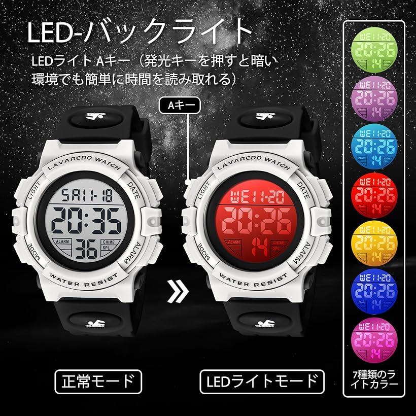 子供 デジタル腕時計 キッズ 防水腕時計 スポーツウォッチ 多機能 50M防水 LED表示 アラート ストップウォッチ 日本語取扱説明書付き (06-ブラック-ホワイト)