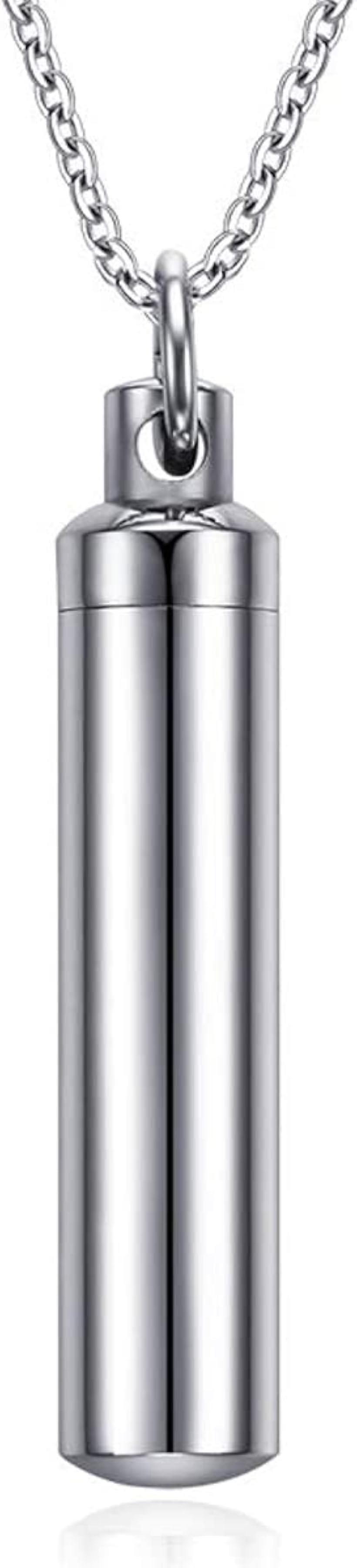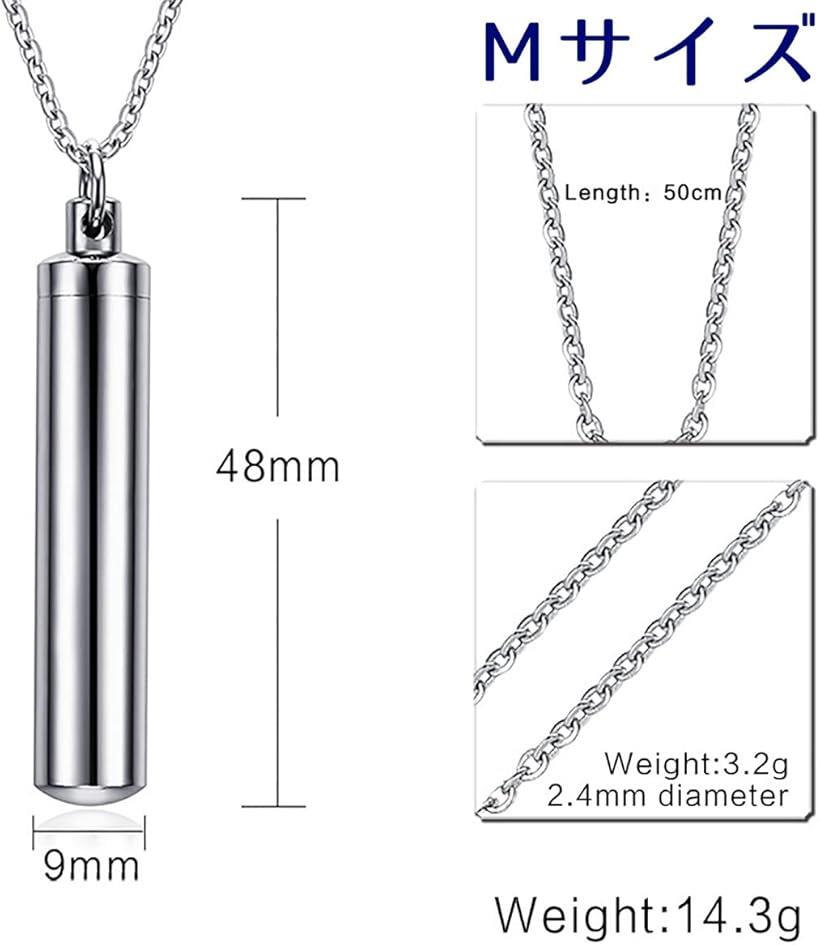 遺骨 ペンダント メモリアルペンダント ネックレス アクセサリー 防水 形見 携帯 犬 猫 ペット 遺骨カプセル ステンレス Mサイズ (シルバー, Mサイズ)