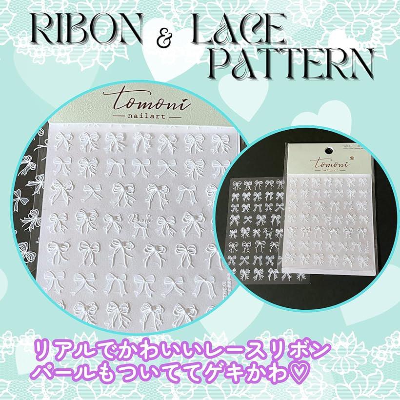 ネイルシール リボン レース パール 張るだけ ネイルパーツ ネイルチップ ネイルアート ジェルネイルシール デコパーツ 蝶々 細リボン セルフネイル ハンドメイド スマホケース 貼るだけ シンプル レースB (ホワイト)
