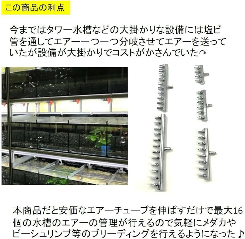 バリエーションコード : 2bus83liof商品コード2bus83liof商品名水槽 エアバルブ 分岐管 エアー分岐 エアフロー バルブ コック 空気 エアー量調節 エアーポンプアクセサリーブランドST TSサイズ等12連コック「選べるエアー分配器4連 6連 8連 10連 12連 」飼育水のエアー量を調整できるエアーチューブ 分配器です。エア一チューブは空気入口外径約8mm/エアチューブ4mm規格を接続できる汎用タイプです。「この商品の利点」今まではタワー水槽などの大掛かりな設備には塩ビ管を通してエアー一つ一つ分岐させてエアーを送っていたが設備が大掛かりでコストがかさんでいた↷本商品だと安価なエアーチューブを伸ばすだけで4個、6個、8個、 10個、12個 の水槽のエアーの管理が行えるので気軽にメダカやビーシュリンプ等のブリーディングを行えるようになった。特にベランダや庭でプラ船飼育する際に塩ビ管での設置が難しいので簡易的に設置ができる本商品が使用し易いです。水槽、池、プラ船の数、大きさにより4連、6連、8連、10連、12連の中から適したものをお選びください「手元で操作を行える」使用方法:コックを捻るだけでON/OFF。エアーを送るON、エアーを止めるOFFの操作を手元の操作だけで行えるのでエアーの管理が楽になります。「対象生物」メダカ、エビ、ランチュウ、鯉、ディスカス、アロワナ、グッピー、ベタ、金魚、熱帯魚、観賞魚、金魚、大型魚、古代魚等「分岐管 商品サイズ」サイズは画像参照/空気入口外径約8mm/エアチューブ4mm規格 素材:真鍮※ 他ネットショップでも併売しているため、ご注文後に在庫切れとなる場合があります。予めご了承ください。※ 品薄または希少等の理由により、参考価格よりも高い価格で販売されている場合があります。ご注文の際には必ず販売価格をご確認ください。※ 沖縄県、離島または一部地域の場合、別途送料の負担をお願いする場合があります。予めご了承ください。※ お使いのモニタにより写真の色が実際の商品の色と異なる場合や、イメージに差異が生じることがあります。予めご了承ください。※ 商品の詳細(カラー・数量・サイズ 等)については、ページ内の商品説明をご確認のうえ、ご注文ください。※ モバイル版・スマホ版ページでは、お使いの端末によっては一部の情報が表示されないことがあります。すべての記載情報をご確認するには、PC版ページをご覧ください。