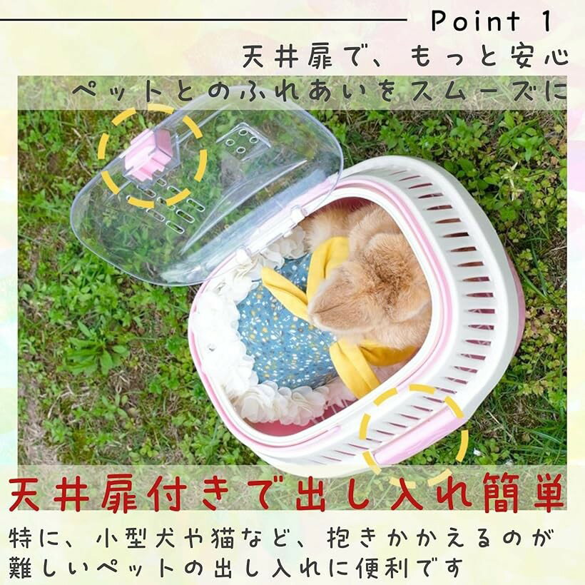 バリエーションコード : 2b9lxx15tr商品コード2b9l0r6f6h商品名小動物 ハムスター おでかけ ケージ 小型ペット用 キャリー ケースブランドAll Trustカラーピンクサイズ等小型「換気抜群&快適な移動」この小動物用お出かけケージは、側面に空気穴が多数配置されており、換気が十分に行えます。小動物たちにとって、長時間の移動も安心。湿気や匂いを防ぎ、快適な空間を提供します。ハムスター、モルモット、チンチラなどの小動物を長時間安全に移動させるのに最適です。旅行中や動物病院への移動時に便利です。移動時に便利です。「持ち運びラクラクな取っ手付き」取っ手が付いているので、持ち運びが簡単で、飼い主さんの負担を軽減します。ペットと一緒にお出かけする際に便利なアイテムです。小動物たちにとってストレスの少ない移動環境を提供します。換気がしっかりしているため、長時間の移動も安心です。「商品内容」25x20.5x16(cm)※ 他ネットショップでも併売しているため、ご注文後に在庫切れとなる場合があります。予めご了承ください。※ 品薄または希少等の理由により、参考価格よりも高い価格で販売されている場合があります。ご注文の際には必ず販売価格をご確認ください。※ 沖縄県、離島または一部地域の場合、別途送料の負担をお願いする場合があります。予めご了承ください。※ お使いのモニタにより写真の色が実際の商品の色と異なる場合や、イメージに差異が生じることがあります。予めご了承ください。※ 商品の詳細(カラー・数量・サイズ 等)については、ページ内の商品説明をご確認のうえ、ご注文ください。※ モバイル版・スマホ版ページでは、お使いの端末によっては一部の情報が表示されないことがあります。すべての記載情報をご確認するには、PC版ページをご覧ください。「給水器付きで便利」給水器が付いており、移動中でもペットが水分を摂れるように設計されています。旅行やお出かけの際に便利で、ペットの健康も守ります。お水の管理が楽々。さらにケージ自体の掃除も簡単で、日々のお手入れがストレスなく行えます。