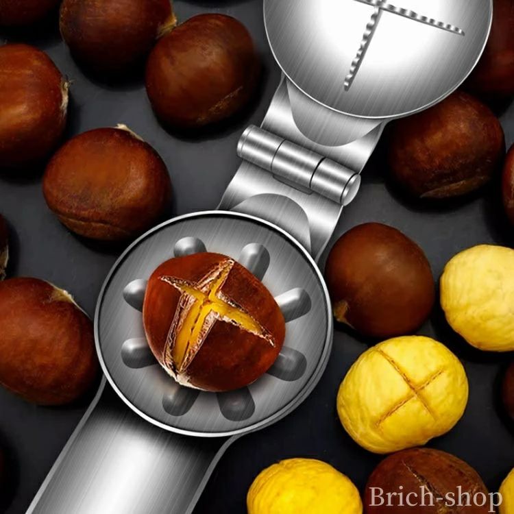 手軽に使える切れ込み用ペンチタイプの栗むき器です。大量の栗に切り込みを入れたい時に便利です。栗以外にもクルミやナッツなどにも使えるので、さまざまな用途で使いたい方におすすめ。生の栗に十字に切り込みを入れておくと、加熱した後に手で皮がむきやすくなります。市販の焼き栗や甘栗をむくときにも便利。栗だけでなくナッツやくるみなどにも対応し、幅広く利用できます。ブレードはステンレス製を採用しており、耐久性があるのも魅力。丸洗いすることができるので衛生的に使えます。ハンドルは人間工学に基づいて設計されているため、力が伝わりやすく手の負担が軽減できます。使い方:ハンドルを開いて本体の皿部分に栗をセットし、両方のハンドルを握って栗を挟むことで、栗に十字の切れ込みが入ります。 サイズ F サイズについての説明 F 17.1*5cm 素材 ステンレス 色 シルバー 備考 ●サイズ詳細等の測り方はスタッフ間で統一、徹底はしておりますが、実寸は商品によって若干の誤差(1cm〜3cm )がある場合がございますので、予めご了承ください。 ●製造ロットにより、細部形状の違いや、同色でも色味に多少の誤差が生じます。 ●パッケージは改良のため予告なく仕様を変更する場合があります。 ▼商品の色は、撮影時の光や、お客様のモニターの色具合などにより、実際の商品と異なる場合がございます。あらかじめ、ご了承ください。 ▼生地の特性上、やや匂いが強く感じられるものもございます。数日のご使用や陰干しなどで気になる匂いはほとんど感じられなくなります。 ▼同じ商品でも生産時期により形やサイズ、カラーに多少の誤差が生じる場合もございます。 ▼他店舗でも在庫を共有して販売をしている為、受注後欠品となる場合もございます。予め、ご了承お願い申し上げます。 ▼出荷前に全て検品を行っておりますが、万が一商品に不具合があった場合は、お問い合わせフォームまたはメールよりご連絡頂けます様お願い申し上げます。速やかに対応致しますのでご安心ください。