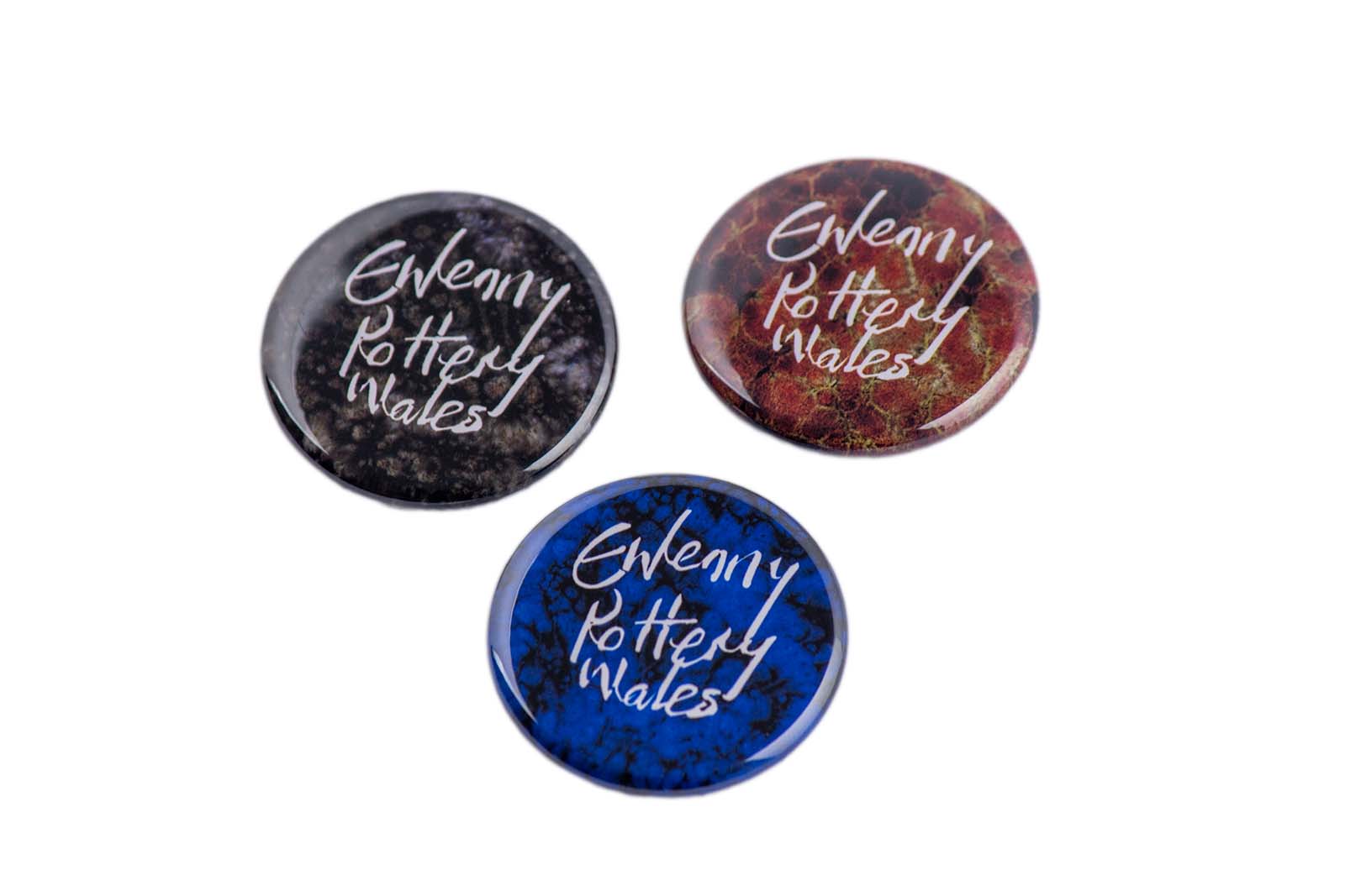 【雑貨】Ewenny Pottery エウェニーポテリー 缶バッジ 直径3センチ ブルー ロゴ ファッション 小物 アイテム ノベルティ イギリス 伝統工芸 陶器 記念品