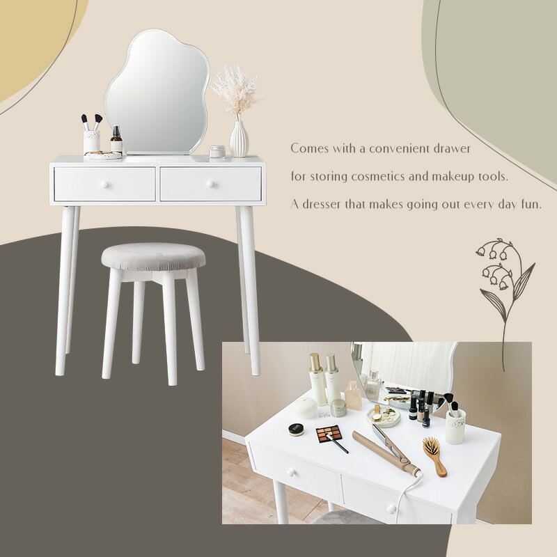 ミラーが可愛い ドレッサー デスク コンパクト 引き出し 収納 おしゃれ かわいい ホワイト 白 スツール付き 木製 化粧台 鏡台