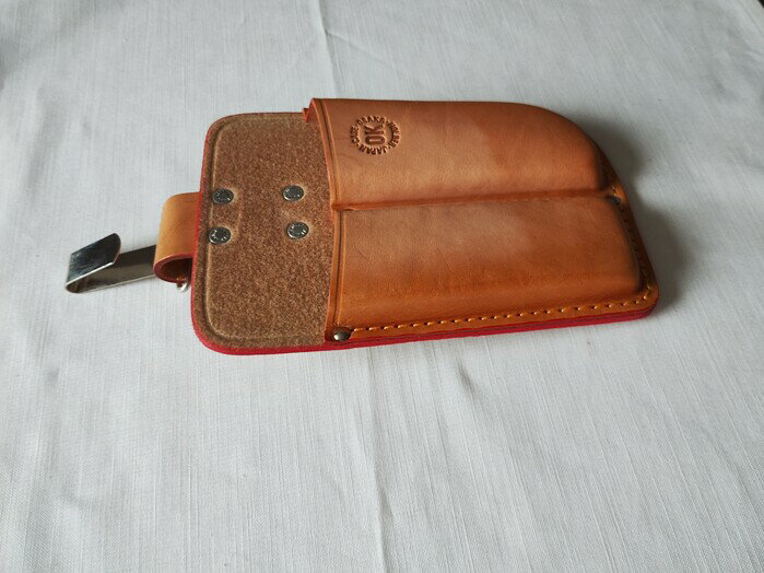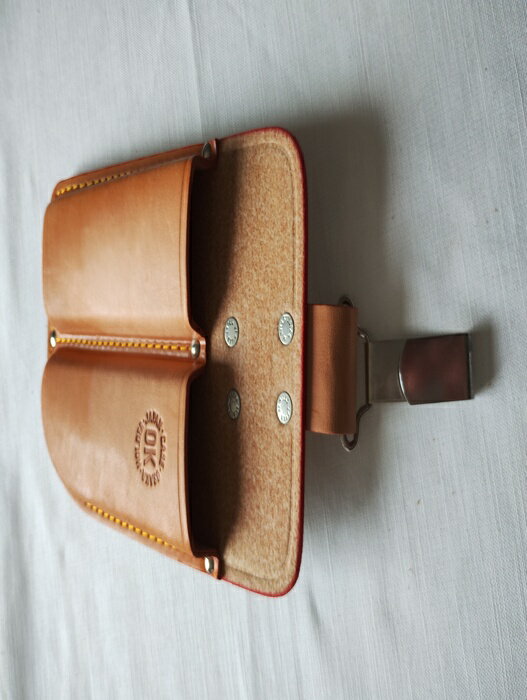商品情報材質:牛ヌメ革/不織台OK印 剪定鋏&折込鋸 2丁差 吊りカン付 P6632T 型押し(多少の日焼けあります) 園芸鋏サック 革サック 牛革 剪定鋏 折込鋸 2丁 吊りカン付 岡田製作所 牛ヌメ革/床革を使用した剪定鋏&折込鋸用の2丁差のサックです。 5