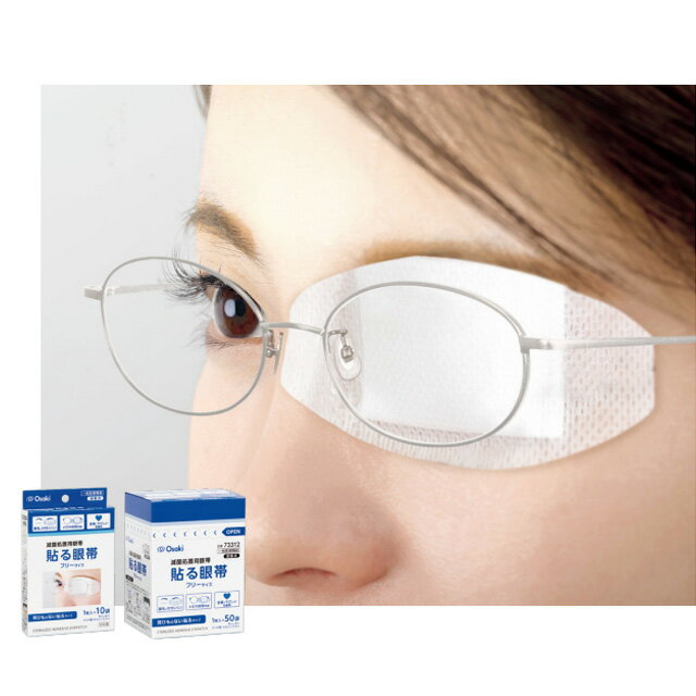 <メール便2個まで可能>オオサキメディカル オオサキ貼る眼帯 フリー 10枚入【貼れる眼帯 テープ付眼帯 紐なし眼帯 滅菌処理済 肌にやさしい粘着剤 フィット 楕円形状】
