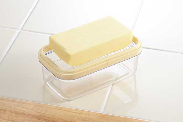一般的なバターカッターの約半分、約5gに切れるバターカッター。ワイヤープレートに乗せて押し出すだけでバターが均等に切れ、そのまま保存できるケースになっています。●品番:SJ1994●サイズ:幅95×奥行165×高さ68mm●容量:620ml●本体重量:152g●材質:フタ:ポリエチレン ケース・ワイヤープレート:ABS樹脂 ワイヤー:18-8ステンレス●原産国:日本●注意事項:200g以下の家庭用サイズのバターに適しており、サイズや形状・置き方によっては全て5gにはカットできない場合があります。冷えたバターは硬いためすぐには使わないで下さい。常温(約15℃)に戻したバターをカットしてください。フタはかぶせタイプです。