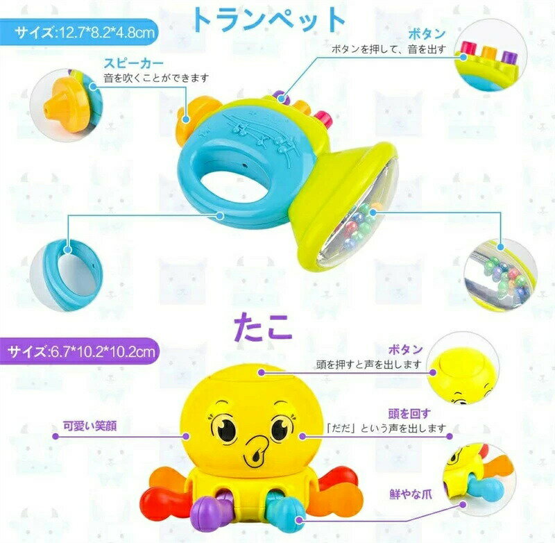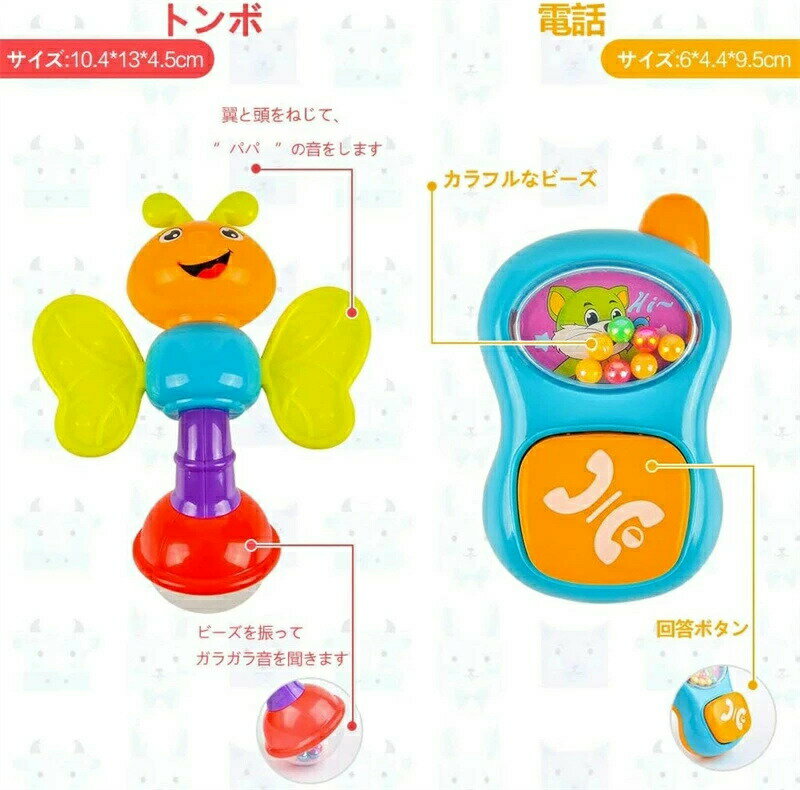 商品説明【赤ちゃんのおもちゃとしてお勧め】赤ちゃんのおもちゃ10点セット。握るのが難しい小さな赤ちゃんの手でも握りやすく作られているので、握って確かめたり、ボールのように投げたりと、ほかにも遊び方はいろいろ。0歳(6か月ころ)から2歳ころまで長く遊べる赤ちゃんのおもちゃです。赤ちゃんが楽しく思う存分遊べます。【五感を刺激】歯がためラトルセットは鮮やかで明るい色と音を出すことができるのが特徴で、赤ちゃんの注意をすぐに引き付けることができます。視覚刺激聴覚刺激噛むことによる歯茎への刺激など赤ちゃんの感覚を呼び起こすためのガラガラセットで、五感をバランスよく刺激すると同時に、心身の健やかな成長も促してくれます♪【カラフル&多様】:ボール球形、動物の形、携帯電話の形、ダブルボールのバーベル、キャンディー、ベビーラッパなとで合計10PCSな豊富のハンドラトルおもちゃ。赤ちゃんの手や指の運動視覚聴覚を刺激し、発達を促してくれる手遊びおもちゃです。尖った部分も無い、赤ちゃんに傷つけない。ご注意:消毒キャビネットに入れないでください。定期的に70度ぐらいのお湯で消毒してください。【安全な素材でママ安心】ABS安全ゴムと食品衛生法に準じた安全な素材を使って、フタル酸エステルとBPAを含まない、無乳剤、噛み切れない噛みポイントので、子供舐めても安全です。持ちやすいサイズと角も丸いデザインで、赤ちゃんが安心して遊ばせることができます。【出産祝いプレゼントとしてピッタリ】出産祝いの贈り物、お誕生日、ハロウィンのプレゼントやギフトにもピッタリです。男女を問わず幼児受けの良い玩具なので、おすすめです。そして、工場2年品質保障がつきます。商品に対して、何かご質問やご要望などがございましたら、是非気軽くてこちらに連絡ください。ぬくもりを感じる優しい手触の赤ちゃんおもちゃ10個セットです。0歳から2歳頃まで長く遊べる幼児のおもちゃですベビーの小さな手に合わせて軽いので自分で握ぎやすく振りやすい!可愛いデザイン、カラフルな商品は非常に子供たちに人気があります赤ちゃんの一番成長が期待できる時期に、ガラガラは赤ちゃんの「見る」「聴く」「触る」「たたく」「つかむ」といった五感をバランスよく刺激して、心身の健やかな成長を促してくれるのです。【人気のおもちゃセット】: このがらがらおもちゃは振ると音が出て、優れた素材を使ったがらがらラトルです。赤ちゃんの教育玩具として使用できます。赤ちゃんの聴覚と視覚の発育を刺激することができ、赤ちゃんのさまざまな能力も鍛えられます。お手入れ方法 【取扱注意】ご使用後は、水、ぬるま湯でぬらした清潔なタオル等を固くしぼって拭き、完全に乾かしてから、清潔に保つようにしてください。安全に噛んで遊ぶことのできる天然ゴム手塗のフードペイント製です。食品衛生法検査に合格、ASTM検査に合格、FDA検査に合格出産祝いだけでなくお食い初めや初節句、バースデープレゼントや100日御祝い、内祝い、また、授かり婚幸せカップルの方へのサプライズプレゼントにも是非セット内容:ボール球形、動物の形、携帯電話の形、ダブルボールのバーベル、キャンディー、ベビーラッパなとで合計10PCS。サイズもちょうどいいです!【注意事項】当店でご購入された商品は、原則として、「個人輸入」としての取り扱いになり、中国からお客様のもとへ直送されます。通関時に関税輸入消費税が課税される可能性があります。課税額はご注文時には確定しておらず、通関時に確定しますので、商品の受け取り時に着払いでお支払いください。詳細はこちらご確認下さい。個人輸入される商品は、全てご注文者自身の「個人使用個人消費」が前提となりますので、ご注文された商品を第三者へ譲渡転売することは法律で禁止されております。一部商品は国内の提携先倉庫から配送されます。国内配送の商品は国内でのお買い物と同じく消費税が発生いたします。関税はかかりません。*色がある場合、モニターの発色の具合によって実際のものと色が異なる場合があります。商品説明【赤ちゃんのおもちゃとしてお勧め】赤ちゃんのおもちゃ10点セット。握るのが難しい小さな赤ちゃんの手でも握りやすく作られているので、握って確かめたり、ボールのように投げたりと、ほかにも遊び方はいろいろ。0歳(6か月ころ)から2歳ころまで長く遊べる赤ちゃんのおもちゃです。赤ちゃんが楽しく思う存分遊べます。【五感を刺激】歯がためラトルセットは鮮やかで明るい色と音を出すことができるのが特徴で、赤ちゃんの注意をすぐに引き付けることができます。視覚刺激聴覚刺激噛むことによる歯茎への刺激など赤ちゃんの感覚を呼び起こすためのガラガラセットで、五感をバランスよく刺激すると同時に、心身の健やかな成長も促してくれます♪【カラフル&多様】:ボール球形、動物の形、携帯電話の形、ダブルボールのバーベル、キ