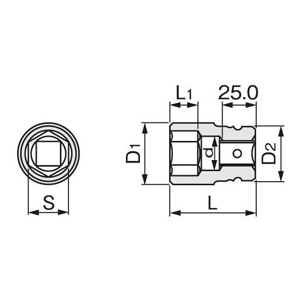 TONE(トネ) インパクト用ソケット(6角) 6NV-36 ●差込角19.0mm(3/4inch) ●二面幅36mm ●6角 ●二面幅36mm