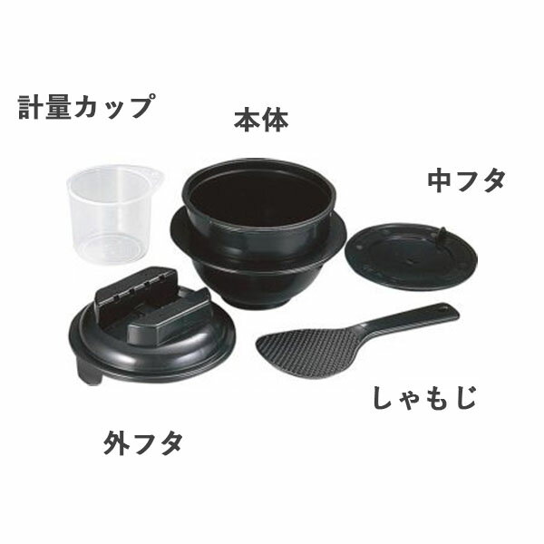 商品仕様 ●材質: 本体/耐熱ポリプロピレン(備長炭粉末配合) しゃもじ/ポリプロピレン(備長炭粉末配合) 計量カップ/ポリプロピレン ●容量|サイズ|重量: 1合炊き:約13.9×13.9×12.5cm(620ml)約182g 2合炊き:約17.3×14.0×13.6cm(1.2L)約205g ●原産国:日本製(燕三条)カクセー 商品の特徴 ●電子レンジ専用の炊飯器(1合炊き|2合炊き)です。 ●電子レンジで簡単に少量(0.5合)から、最短7分で美味しくごはんが炊けます。 ●かためのご飯、やわらかめのご飯などお好みの炊き上がりを調節することも可能。 ●くっつきにくいしゃもじと、米用と水用の目盛りの付いた計量カップが付属。 ●見えるところに片付けておきたくなるカワイイ見た目。 ●一人暮らしや少量のご飯でいい場合などに便利です。 関連商品 いろいろな電子レンジ対応調理器お釜のかたちが見た目にカワイイ、1合炊きと2合炊き。 こちらは見た目もかわいい1合炊き。 こちらは深型タイプな2合炊き
